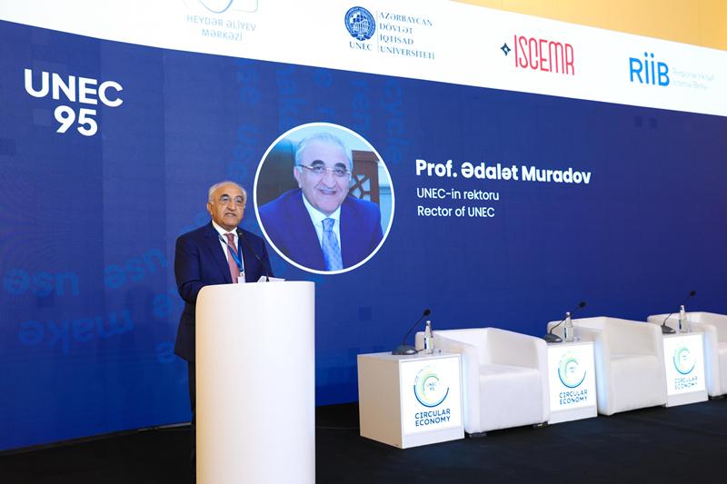 Rektor Ədalət Muradov builki konfransda 24 ölkədən 57 xarici tədqiqatçının iştirak etdiyini, konfransa təqdim olunan elmi məqalələrdən 224-nün seçilərək, xülasələr kitabında təqdim olunduğunu deyib. Rektor UNEC-in strateji hədəflərindən söz açıb və universitetin bu hədəflərə doğru inamla irəlilədiyini bildirib. O, UNEC-in elmi fəaliyyətinə dair statistik məlumatları bölüşərək, "Web of Science" və "Scopus" indeksli elmi məqalələrin sayının artım tempinə görə UNEC-in dünyada lider olduğunu deyib.