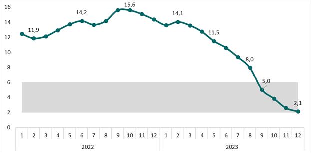 Grafik 1. Azerbaycan'da 2022-2023 enflasyon oranı (% olarak).